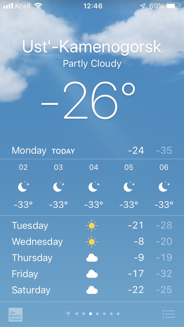 Ek vermoed die nuwe werk het gehoop Öskemen se temperature sou styg. Dit het egter bly daal.