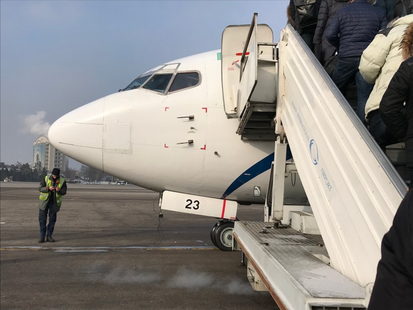 Die rit hierheen is veronderstel om mens af te sit. Ons het Saterdag 14:00 op JHB lughawe aangekom, die aand 19:00 begin vlieg, via Frankfurt na Almaty, vorige hoofstad van Kazakhstan.