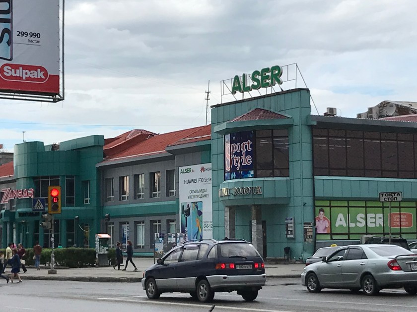 Af met Kazakhstanstraat, verby die sentrale plein en regs af in die volgende straat, die een met die groot Telekom gebou op die linkerkanste hoek.