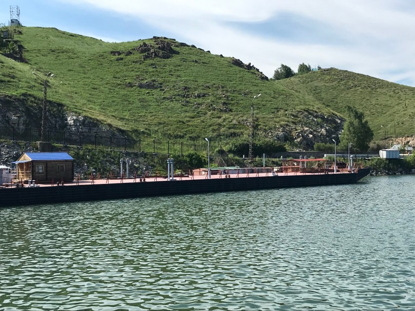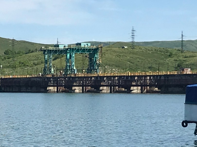 Die pad na die dam kronkel nogal ver langs Irtysh bergop. Dit is reg, bergop! Die dam se vlak is baie hoër as die van die rivier. Die pad loop dood by ‘n bushalte net nadat mens by die damwal verby is waar busse mense op- en aflaai om op bote te klim of weer stad toe te gaan.