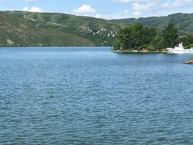 Hierdie foto het my aan die oefen gekry. Ek kla dat dit die hoek is waarteen hy die foto’s neem, maar nou stap ek weer elke dag om die lyf in beheer te kry. By die hawe kan mens onderhandel om vir ‘n toer van die dam geneem te word, vir 5000 tenges vir twee mense, wat tans minder as R200 is.