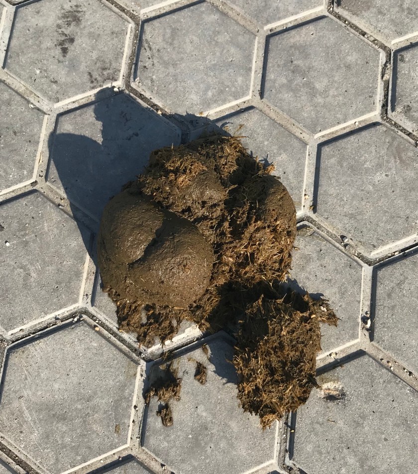 Is dit moontlik? Dat hulle die diere vir ‘n uitstappie geneem het. Padlangs. En dat daardie hompe wel mis is wat deur ‘n dier agtergelaat is? En nie deur ‘n grassnyer nie?