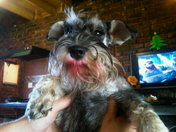 Sy wys na ‘n foto van Shilo om my te oortuig, die reuntjie wat maklik my mooiste Schnauzer is. Seun noem hom my skoupou.