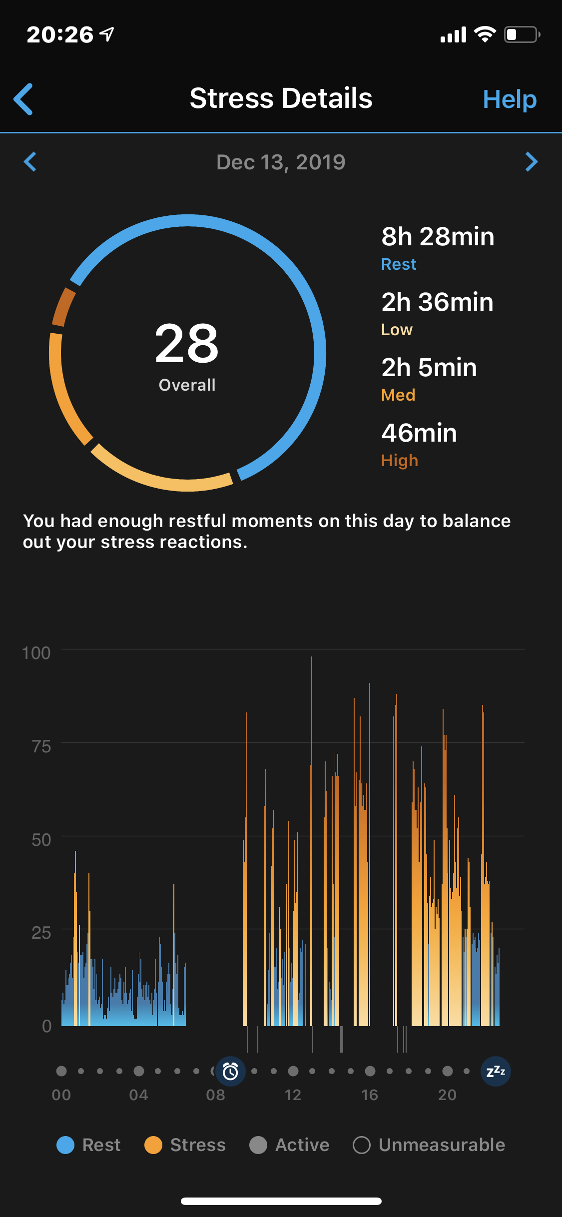Ek moes egter ontspan, my Garmin horlosie het vertel dat ek te gespanne is en nie genoeg rus nie.