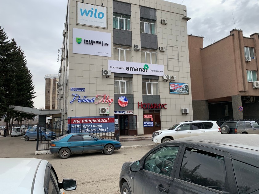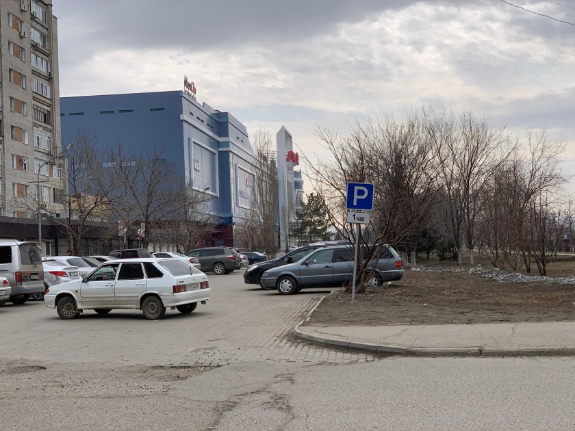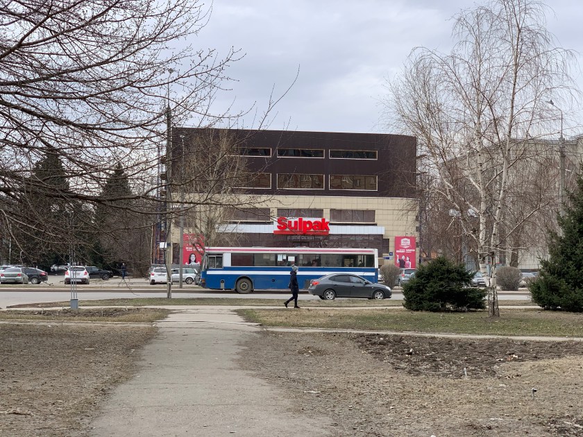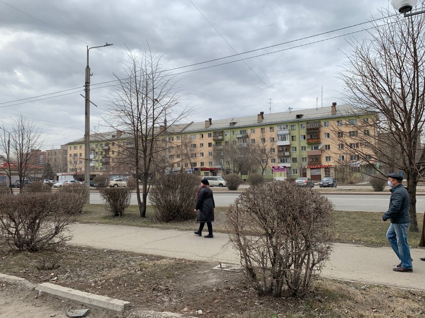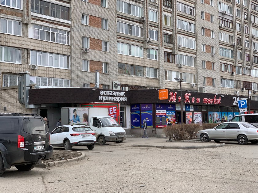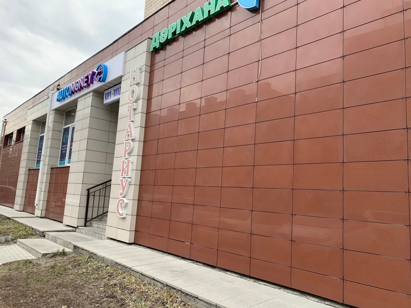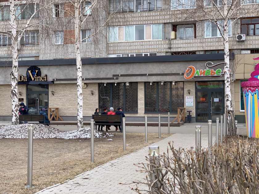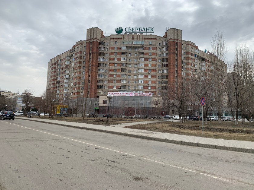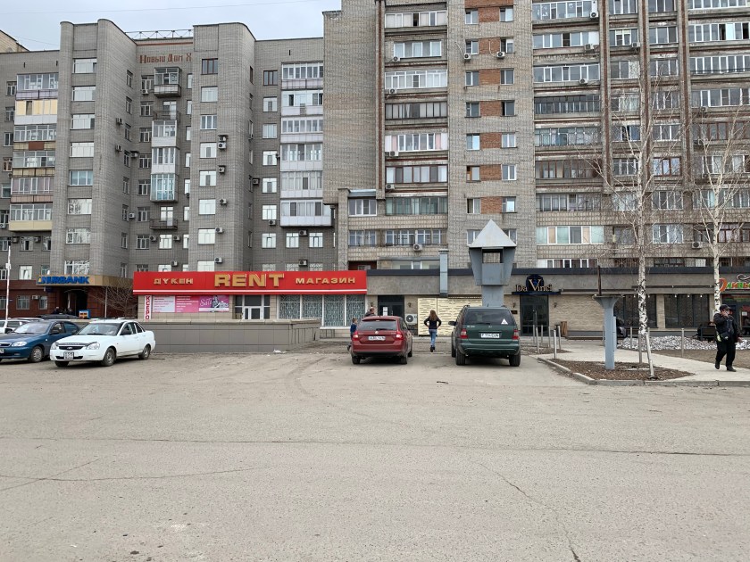 Die een half links op die foto, wat dieper instaan, is van die enigstes met ‘n naam. Die adres is die naam van die gebou, byvoorbeeld Kazakhstand 61. Of as daar nog later gebou is, Kazakhstanstraat 61/1. Die nommers volg mekaar ook nie noodwendig op nie, nommer 73 kan in ‘n ander blok ver van nommer 72 of 74 wees.