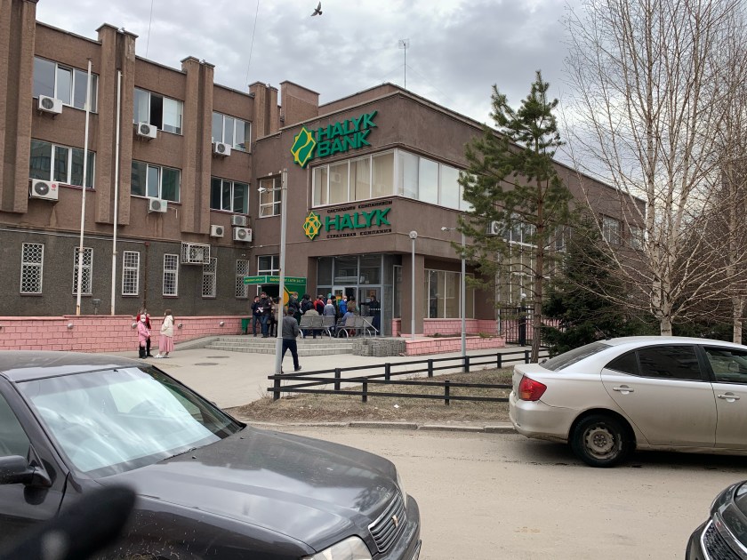 Ons bly gelukkig op Central Square, daarom is die hooftakke van banke ook hier om ons rond. En autotellers waar geld getrek kan word. Moet maar mooi kies, party verstaan net Russies en Qazaq.