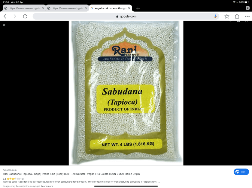 So soek ek die week sago in Qazaqstan. Om die storie te vertel, moet ek egter bietjie agtergrond gee vir die behoefte aan sago, iets wat ek donkiejare laas te ete gehad het.