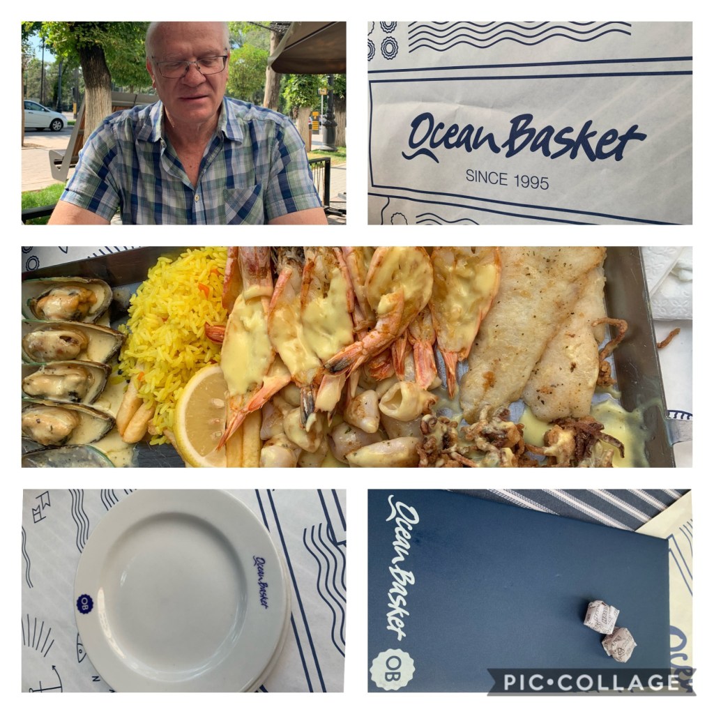 Ek het toe sommer tuis kom oplees. Ja, Ocean Basket het in Suid-Afrika begin. In 1995 in Menlyn, Pretoria. Om seekos goedkoop na die arm man se sak te bring. Voorheen was seekos blykbaar baie duur. Nou is Ocean Basket in 18 lande beskikbaar, waarvan Qazaqstan een is!