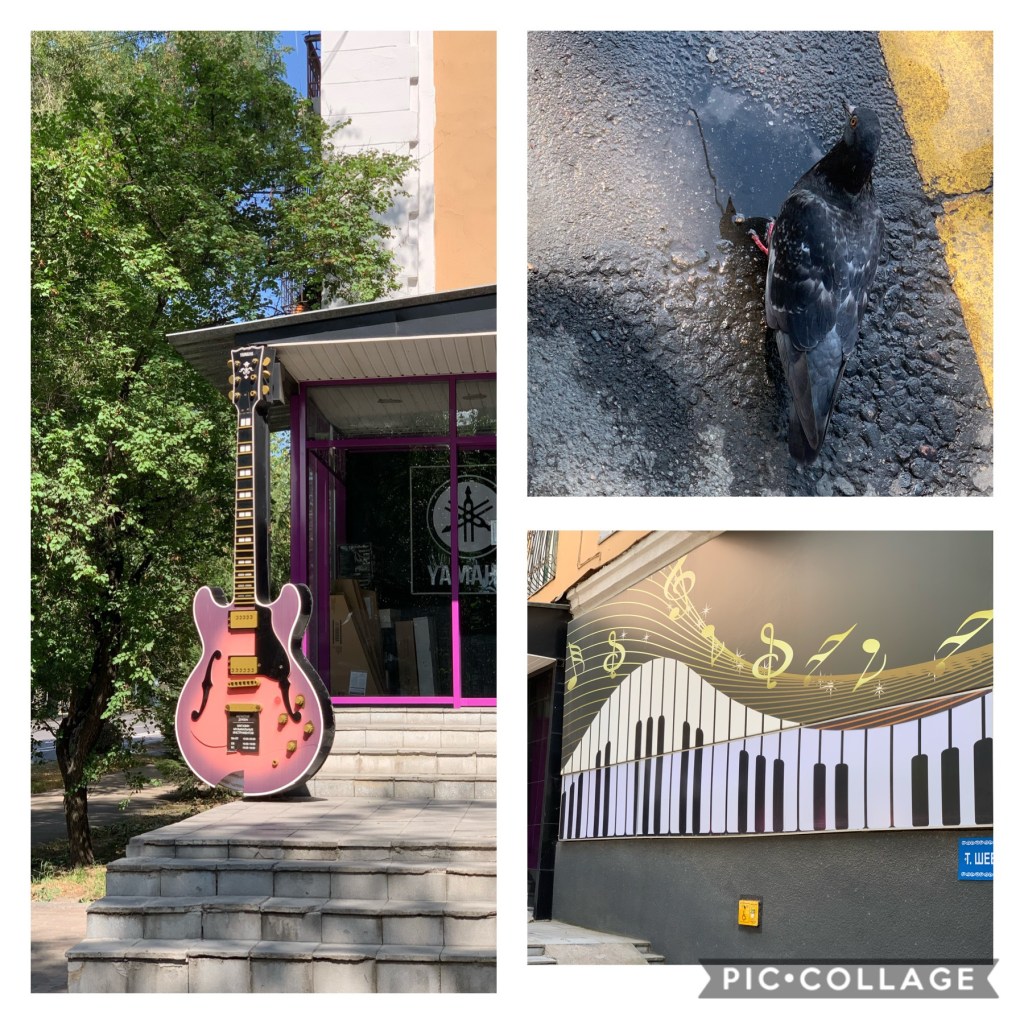 En nog foto’s, ‘n kitaar, musieknote en ‘n duif vir my blogvriendinne. Die duif het net daar by ons voete in die straat kom water drink. Terwyl ons staan en wag vir die verkeerslig om groen te word. Toe loop hy bietjie regs en bietjie links om seker te maak ek en manlief trap hom nie raak nie. Hoe oulik is dit nie?
