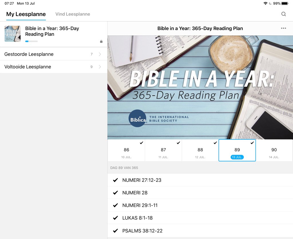 In Julie was daar ‘n halfjaaroefening. Ek moes ‘n leesplan wat ten minste 7 dae duur voltooi om die kenteken te verkry. Dit het ek gedoen, saam met die hoofstukke vir die dag. Om hierdie kenteken te kry.