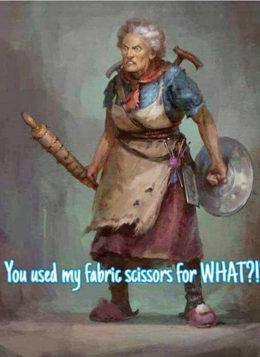 Hierdie artikel volg op ‘n plasing in ‘n naaldwerkgroep of FB, asook ‘n vriendin se plasing op haar eie FB-muur. Spotprente wat twee naaldwerksters gedeel het oor hulle houding as iemand met hulle naaldwerkskêr gerwerk het.