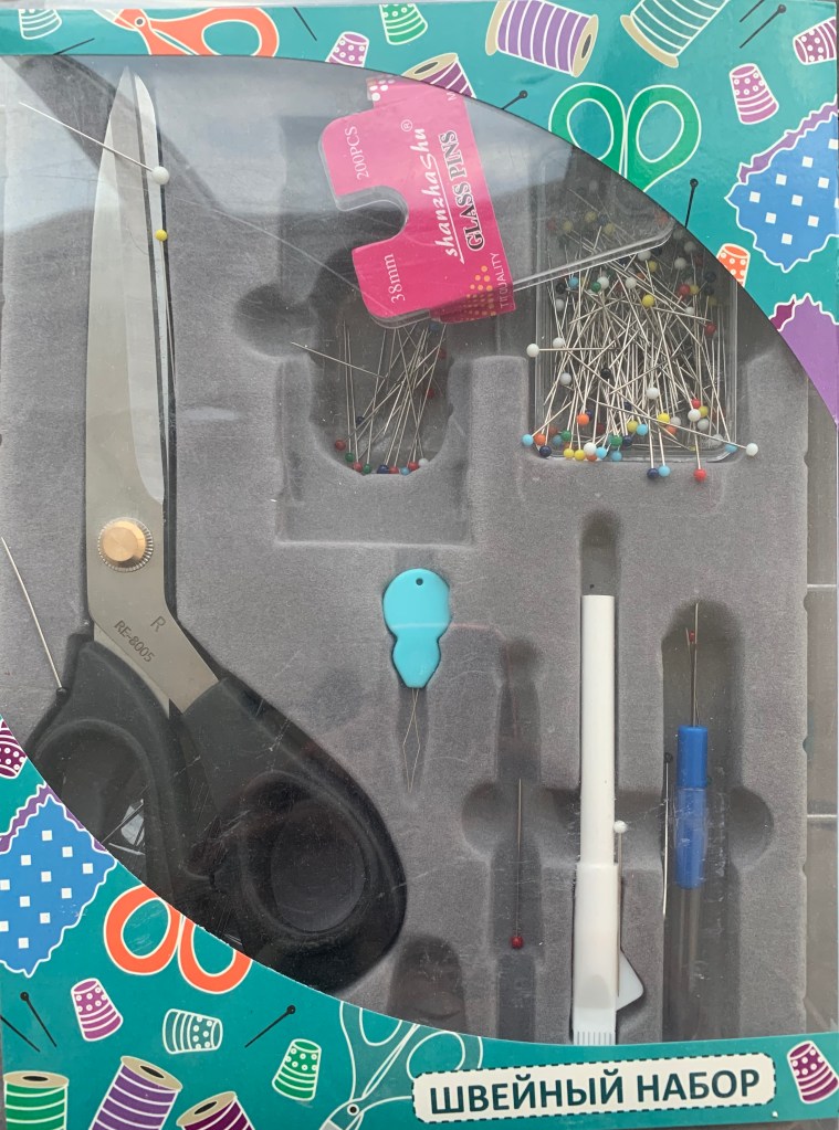 Hulle verkoop ‘n naaldwerkskêr sommer in daardie geskenkpakkies van my jong dae. Skêr, vingerhoed (jy het reg gelees), koppiespelde wat maklik stomp word, en so paar ander noodsaaklikhede vir naaldwerksters.