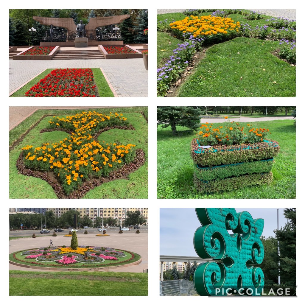 Ek het al genoem dat mens ‘n vrou se hand in die parke kan sien, ek is mal oor die vorms en kleure blomme wat daarvoor gebruik word. Monument van Nursultan Nazarbayef, die eerste president van die land, wat 30 jaar lank in die stoel was. Hy is verlede jaar vervang.