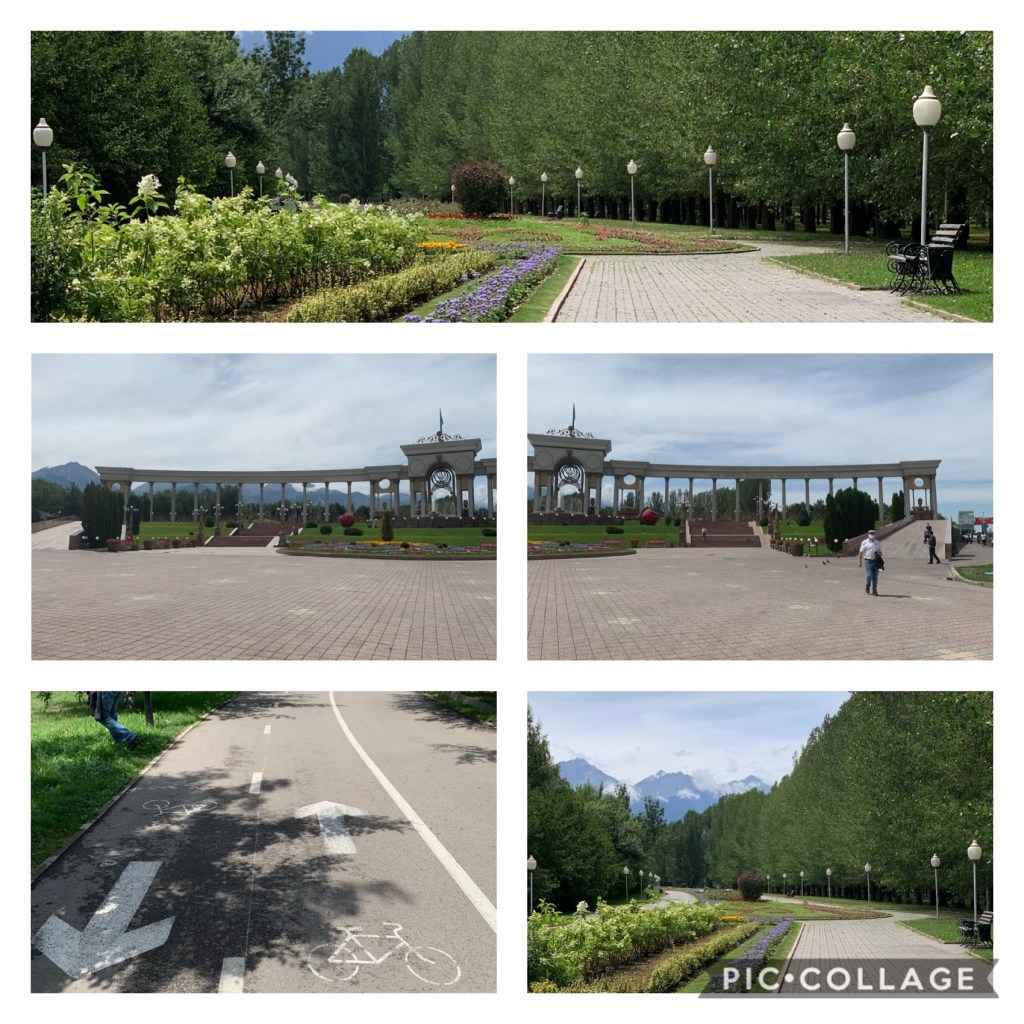 Daar is in al die parke bane vir fietse en vir mense. Ean al die parke word gratis besoek, geen toegangsgeld nie. Hoe lekker is dit nie? En natuurlik is dit skoon. Altyd skoon. En in Almaty is gras – wat gesny word.