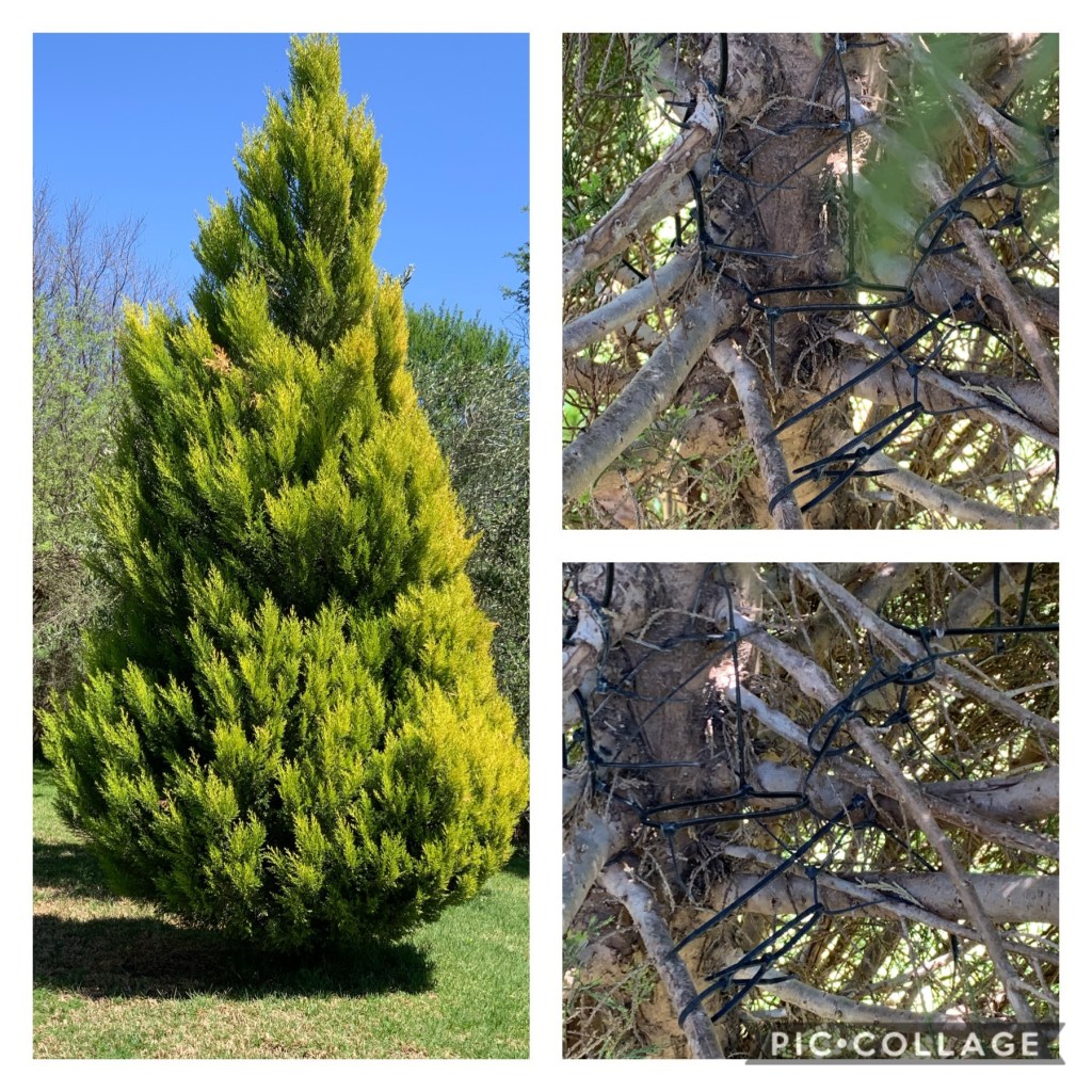 Toe ek die foto’s neem, staan ek en wonder of mense sal glo as ek vertel dat die ou boompie so verinnerweer was dat ek sy takkies met kabelbinders bymekaar getrek het. Omdat dit lelik afgebuig was. Heeltemal vervorm.