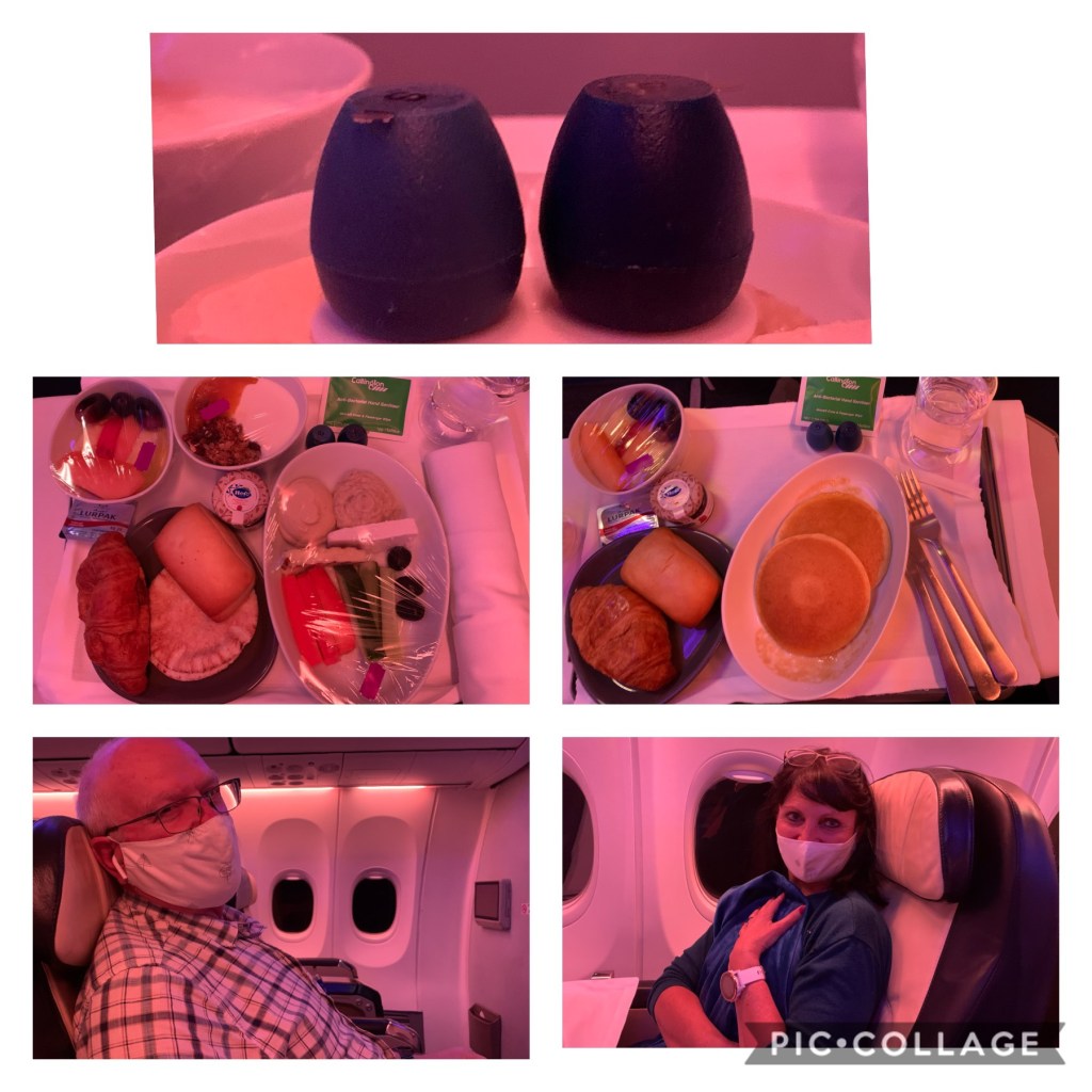 Eers toe ons gereed is, verstaan ek en manlief waarom. Alhoewel baie mense by die besigheidsklas deur ingestap het, was ons die enigste passassiers in die afdeling van die vliegtuig. En natuurlik Thermie, hoe kan ek vergeet?