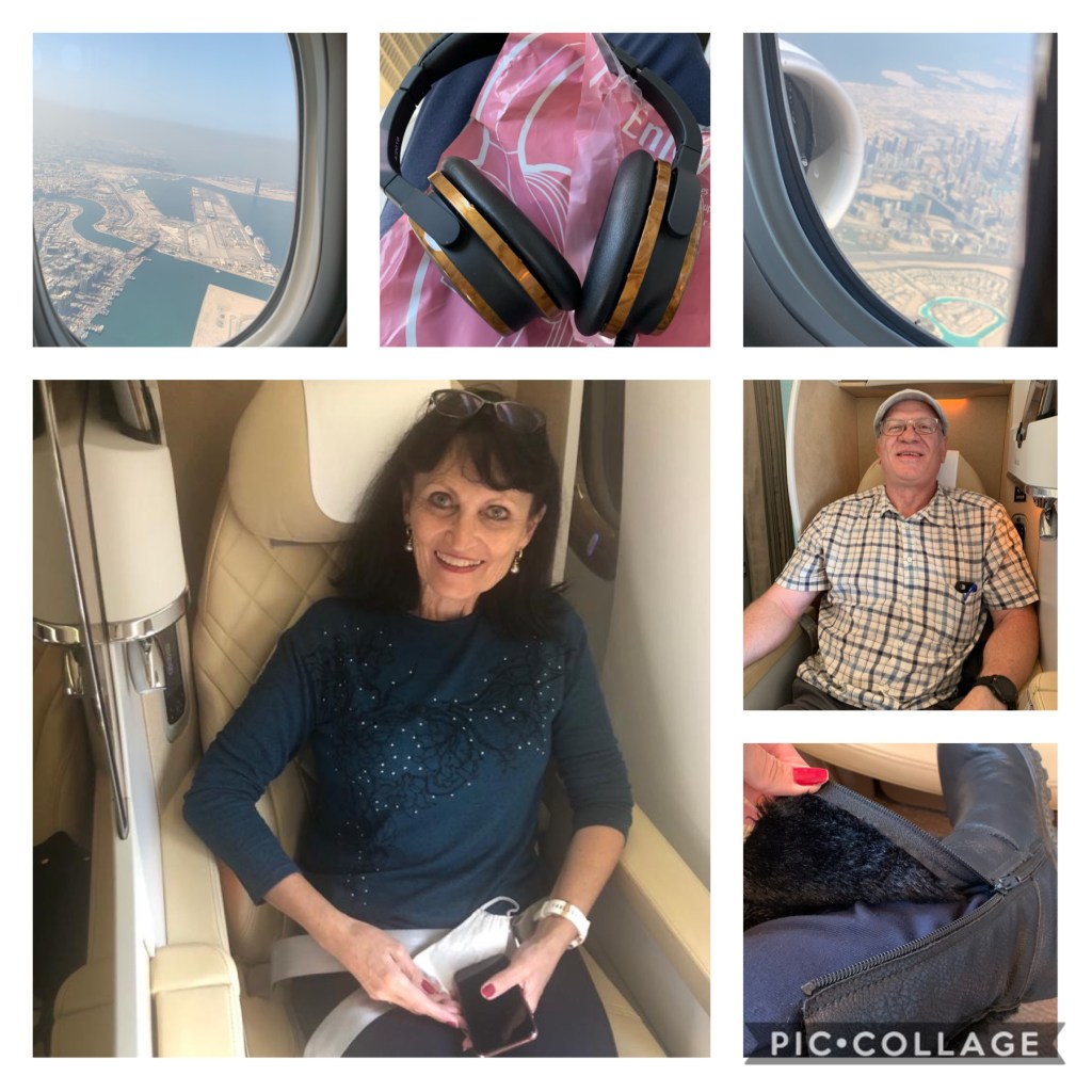 Die vlug tot by Dubai het so bietjie meer as vier ure geduur. En ons is bederf met heerlike kos en drankies.