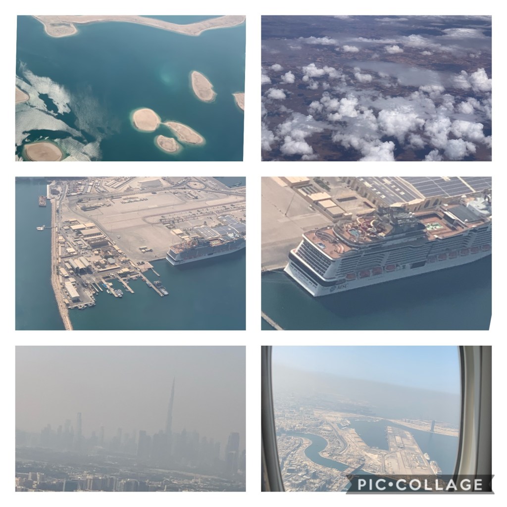 Foto’s: oor Dubai, Burh Kalifa vanuit die lug in die dowwe foto. Mensig, ons was mos in Augustus 2018 in daardie gebou om van doer bo af oor die aarde uit te kyk. Ek weet nie of dit besoedeling is nie, en of dit die vogtigheid in die lug is nie, maar ons het soort van om die gebou opgestyg. En ek kon nie een mooi foto neem nie. Ek kon wel ‘n baie mooi foto van die plesierboot in een van die hawens neem. En natuurlik moet ek wolke afneem – ek is ‘n Geografie juffrou.