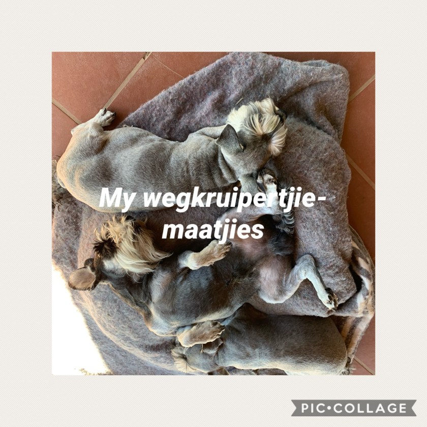 Ek het nou al ‘n paar keer geskryf oor goed wat ek doelbewus moes onderdruk om gelukkig in Kazakhstan te kan wees. Een daarvan was om my Miniatuur Schnauzers om my voete te vind. Maar veral om met hulle wegkruipertjie te speel.