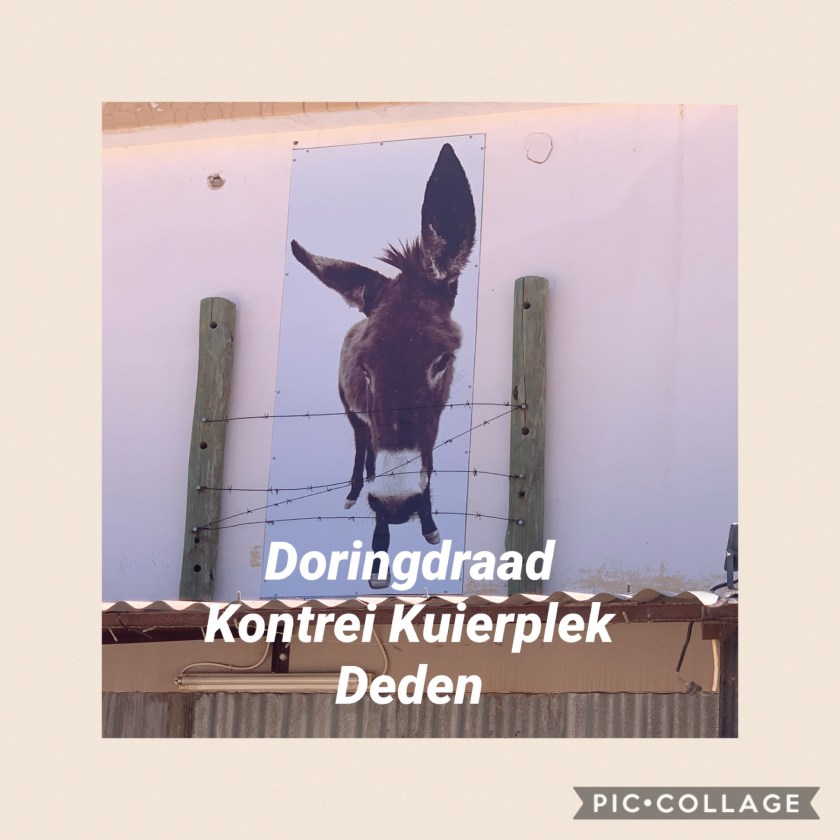 Ek het vertel dat ons verlede Sondag uitgery het na Doringdraad Kontrei-Kuierplek. En dat ek verras was deur die Afrikaans teen die mure, die mooi binnenshuise versiering. En dat ek regtig graag die atmosfeer wou beleef en nie net kos vat en loop nie.