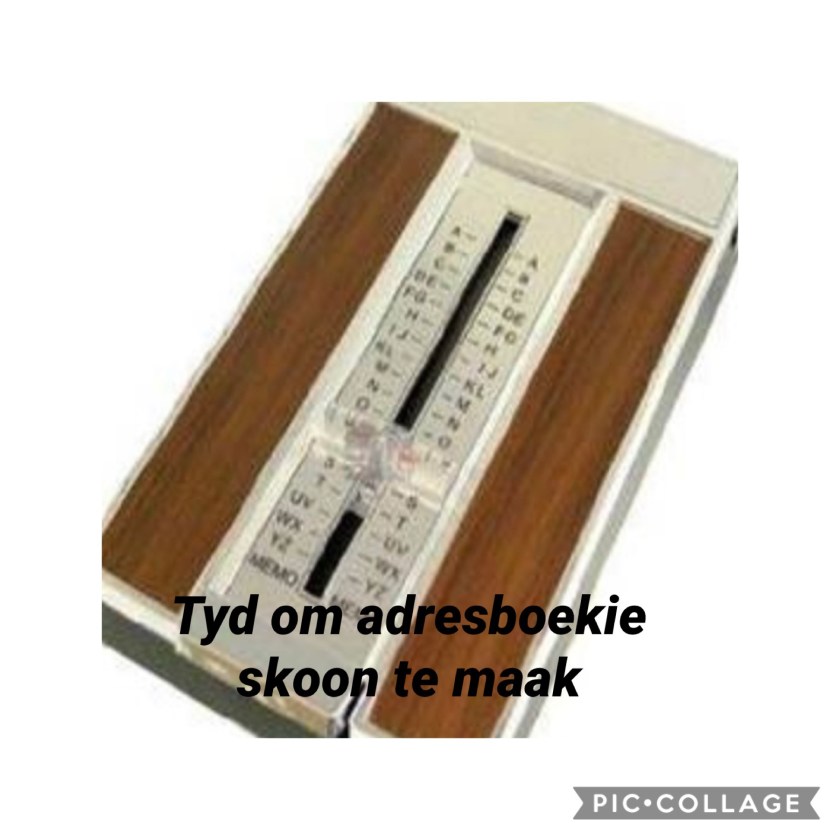 Met die hooffoto gee ek my ouderdom lelik weg. Ek het so ‘n adresboekie in jy huis gehad, my ma ook …