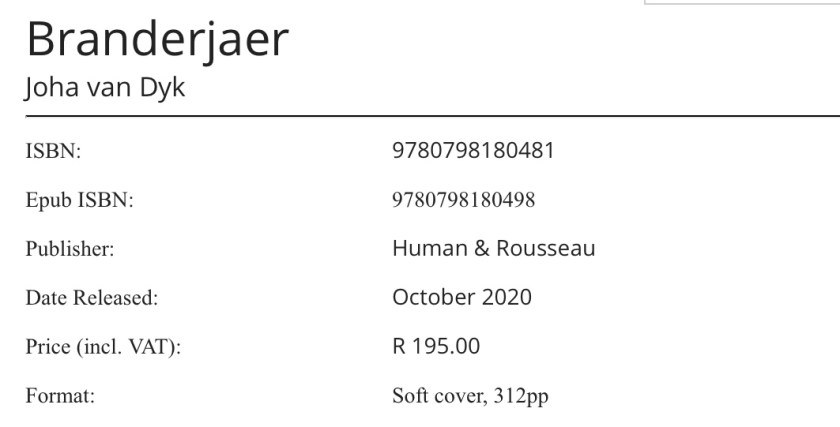 Kyk gerus na die lokprent vir die boek op Facebook by https://www.facebook.com/NBPublishers/videos/branderjaer-deur-joha-van-dyk/781949285703290/