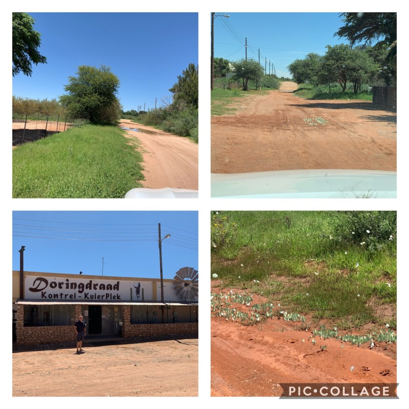 Die enigste straat wat geteer is, is die hoofstraat. Die res van die strate is grondpad, wat my verskriklik baie aan Kazakhstan herinner het. Die plattelandse dorpies het ook grondpad sodra jy van die hoofpaaie afdraai. En as dit reën, soos dit nou in die Noord-Kaap reën, dan staan die water net so in die strate.