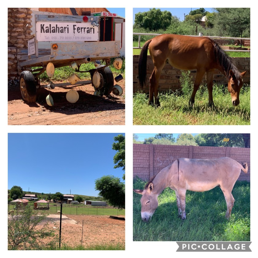 Die Kalahari Ferrari (sien vorige artikel) staan by die Doringdraad. Ek lees op die internet dat mens wel op die donkiekar kan ry.