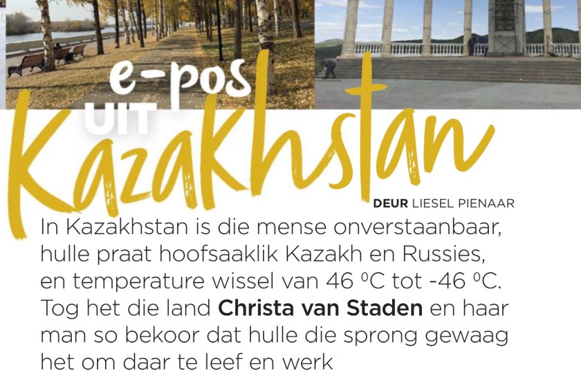 1. Het toe vandag die Sarie gekoop – vir die eerste keer in wie weet hoeveel jare – spesiaal om die artikel oor julle Kazakhstan-verblyf te lees. Dis baie interessant, Christa, en jou foto’s is absoluut pragtig.