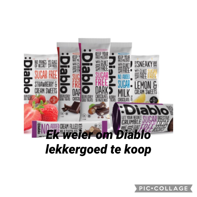 Ek sien die afgelope ruk ‘n nuwe lekkergoed in Checkers raak, die naam Diablo. Ek vermoed almal weet ek toets graag nuwe lekkers, maar by hierdie een gaan ek verby hou. Weens sy naam: Diablo.