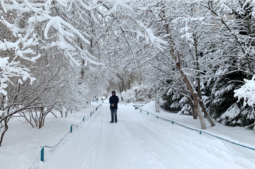 Sneeu op die takke van bome. Ek het kommentaar gelewer en gevra waar sy woon, want dit het my mos na Kazakhstan laat verlang. Nie om daar te gaan bly nie, net om weer na my foto’s te kyk. Hierdie foto is in Maart 2020 in Ust’-Kamenogorsk – aka Öskemen – in Kazakhstan geneem.