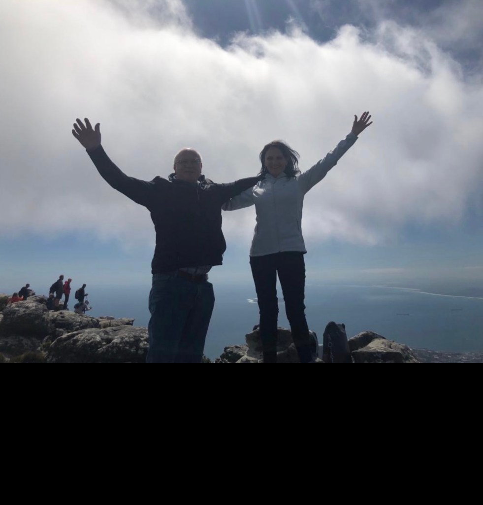 Die tweede foto is in September 2018 op Tafelberg geneem. En dit is die foto waaraan ek gedink het toe my iPad die vorige een gewys het. Ek en manlief op een van die hoogste punte van Tafelberg, Suid-Afrika.