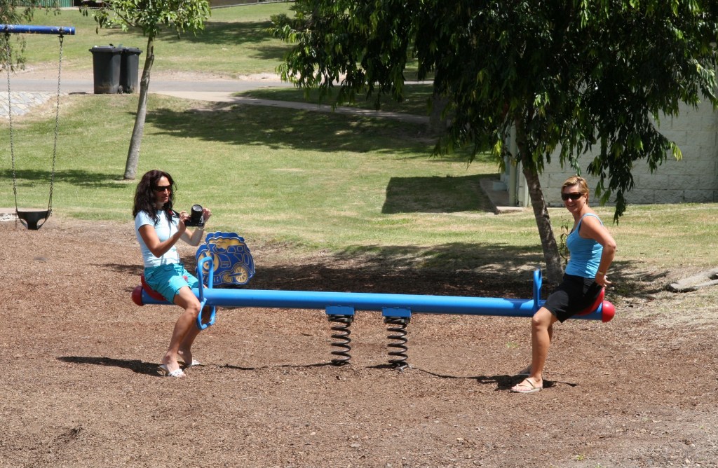 Die laaste foto is van my en my suster op ‘n skoppelmaai in Australië. Het so bietjie soos kinders gevoel toe ons daarop ry terwyl ons bene gerus het op pad na Fraser-eiland.