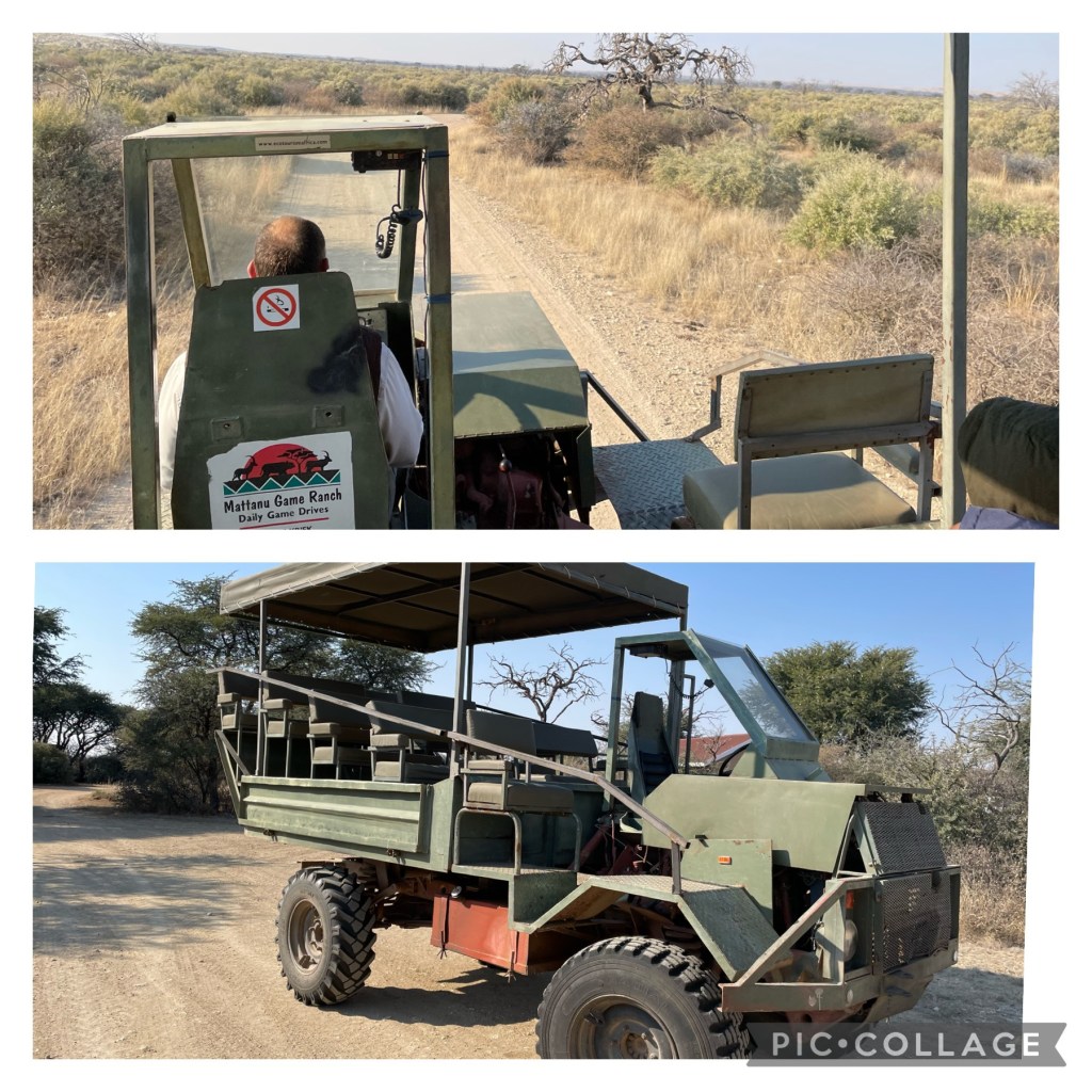 Nadia het ons met die nuus verras dat die eienaar se seun of hyself ons op die wildrit neem. Jacques – sy seun – het ons toe geneem. Hy was ‘n uitstekende gids en hy bestuur daardie groot vervoermiddel – ek het geen idee wat mens dit noem nie – met gemak.