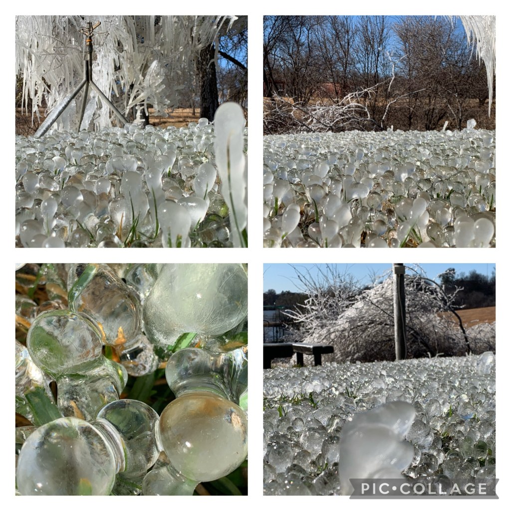 Die eerste groep foto’s wys hoe die gras gelyk het. Ronde yskristalle met langer kristalle tussin-in waar grassies en bossies regop bly staan het.