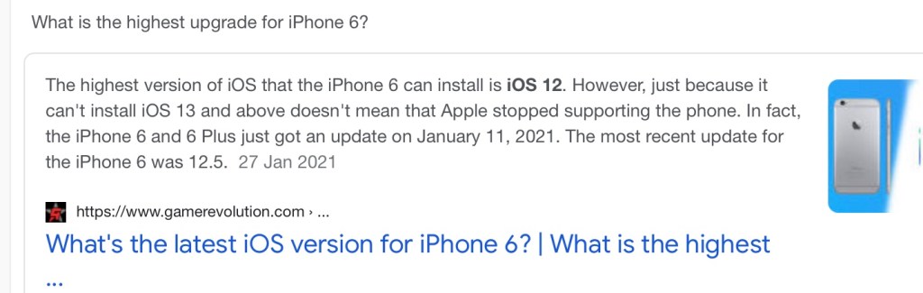 Dit was vir my verdag. Toe doen ek ‘n eenvoudige soektog. Wat is die hoogste bedryfstelsel vir die iPhone 6 en kry ek hierdie inligting.