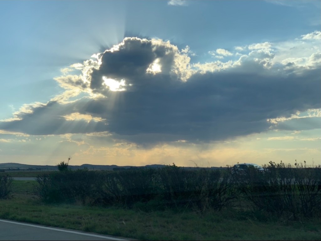 Om die eerlike waarheid te skryf, ek is nogals dankbaar daardie soeklig het nie op ons geskyn nie. Ek sou sowaar bekommerd gewees het. Al weet ek dit is net ‘n wolk. En net die son wat deur die twee gate skyn …