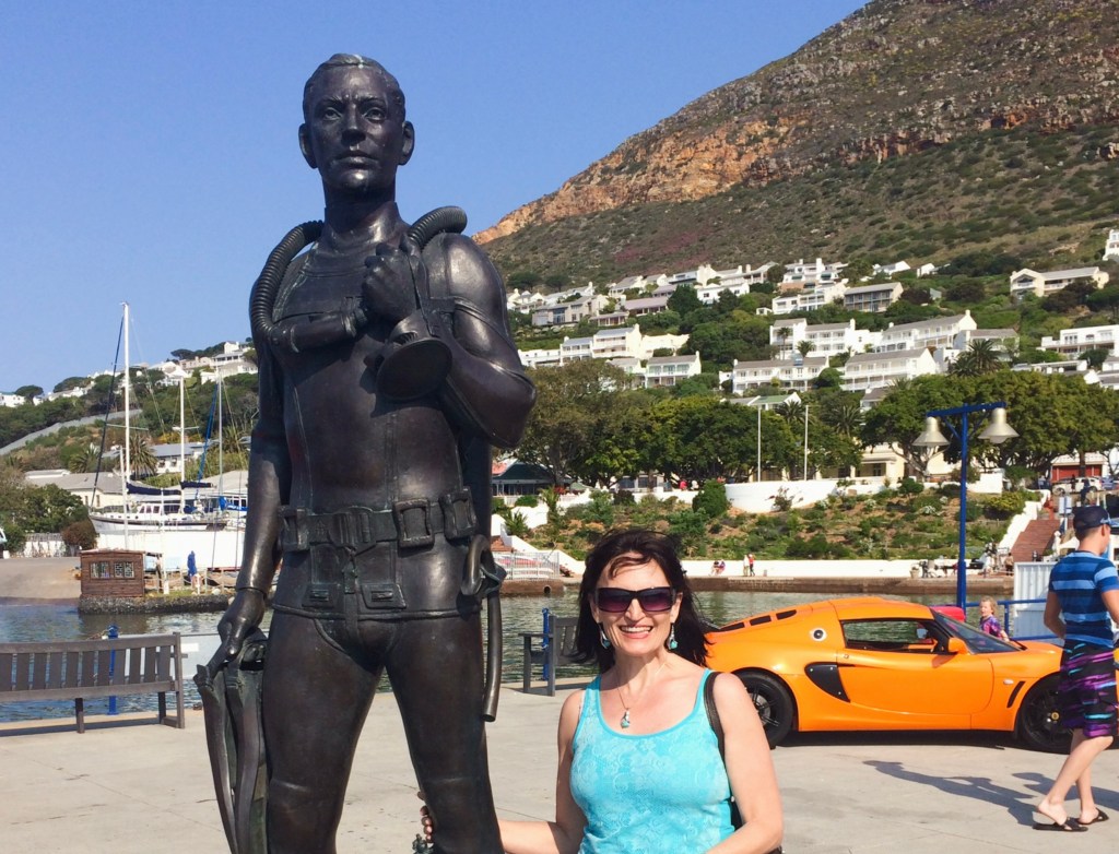 Manlief maak my toe staan by die standbeeld van ‘n man in ‘n duikpak vir ‘n foto, die man baie groter as ekke. Ek kon net by sy knie bykom vir ‘n vasvatplek.