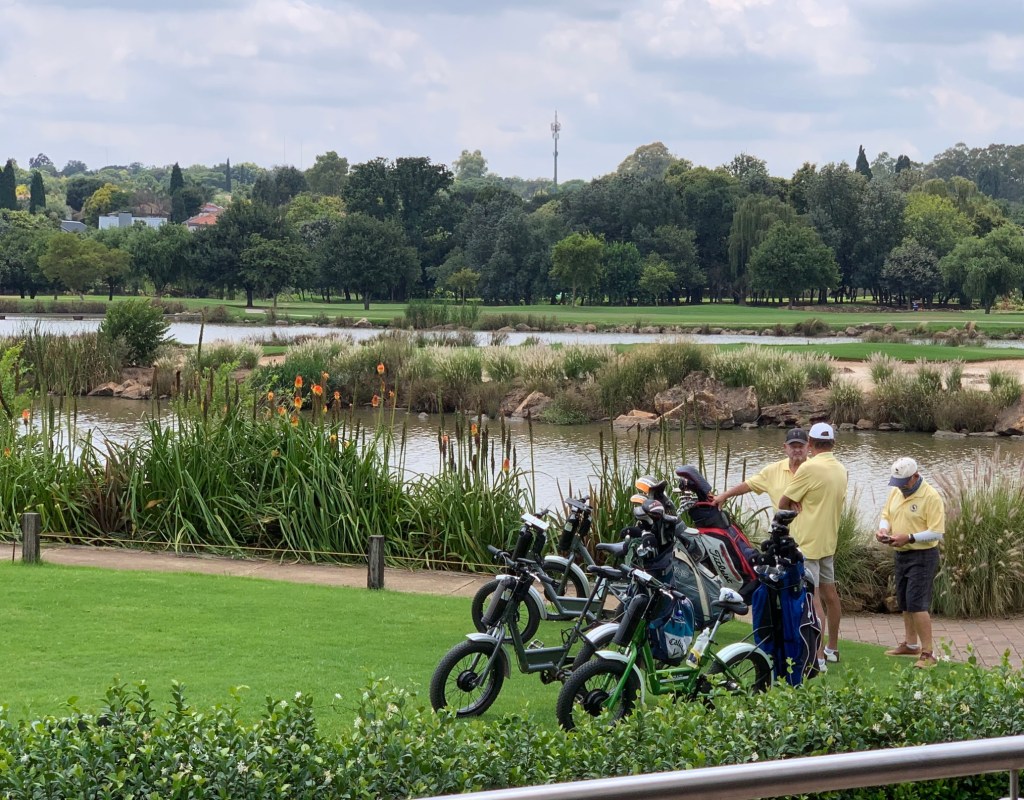 Dit is blykbaar e-fietse, of dan elektroniese fietse, maar nogtans fietse. Tweewielrydinge waarop ‘n gholfsak staangemaak word om dit oor die baan heen te vervoer. Een ding wat ek definitief nie gaan beproef nie. Dit is klaar erg genoeg om alleen op my eie bergfiets te ry.