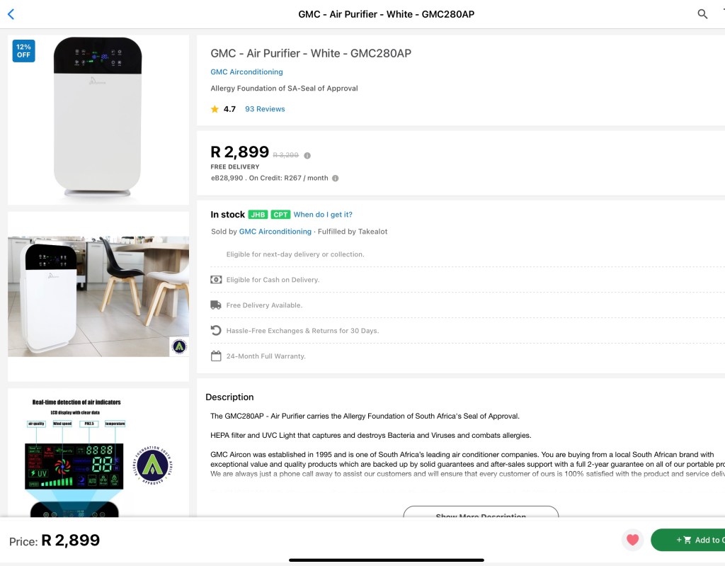 Myne het nie die led skermpie nie en het heelwat minder gekos, ek dink onder R2 000. Mens kan ook by Builders kyk, of op die internet soek as jy die model en naam intik. Voordeel van Takelot is dat jy kan terugstuur as jy ontevrede is, met geen probleme nie.