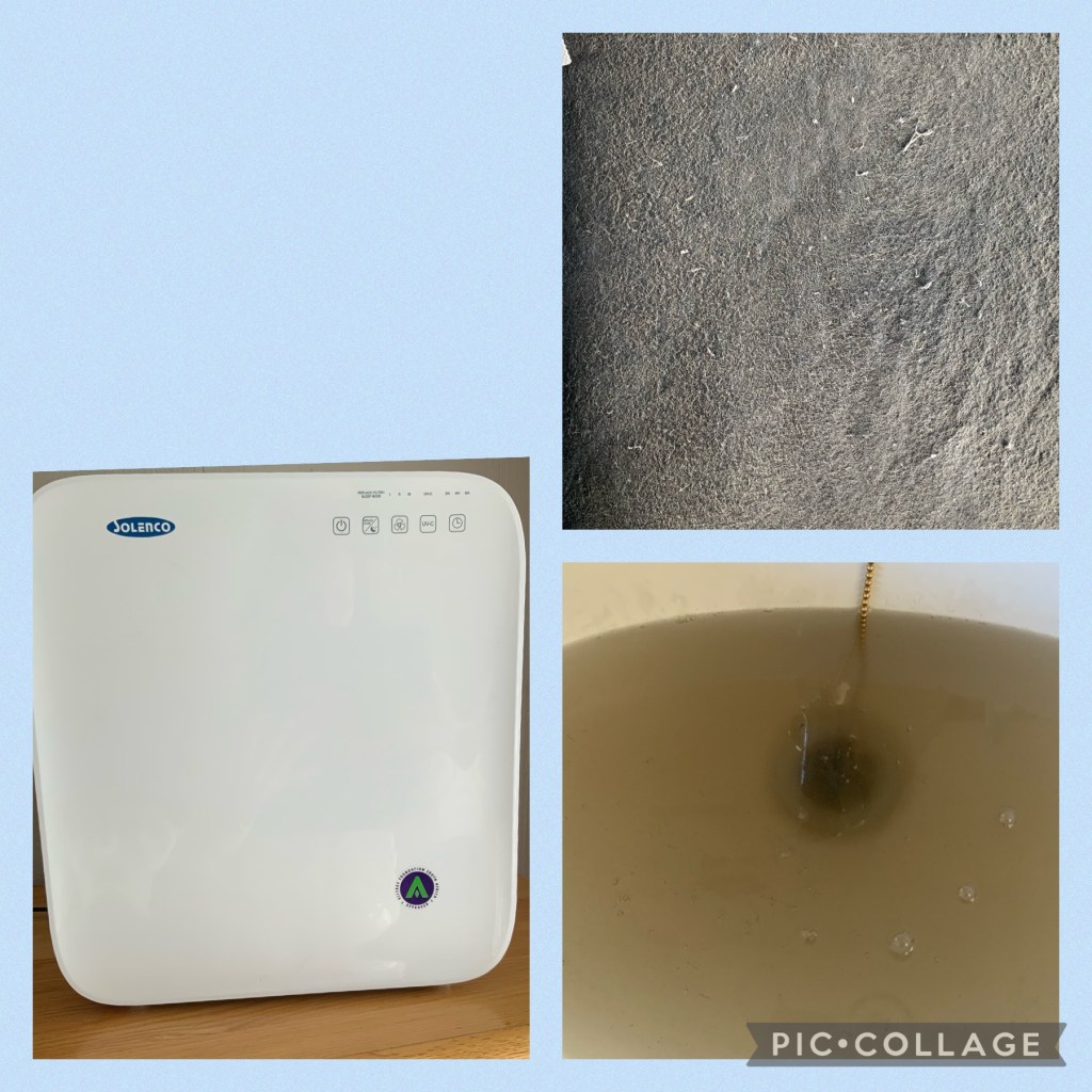 Die masjien, die filter na twee weke, vol swart stof en die swart stof in die water toe ek die voorste filter gou was om te wys hoeveel stof die eerste filter opvang. En dit gaan deur nog filters. Maklik om te vervang, die vervang filters is ook op Takelot beskikbaar.