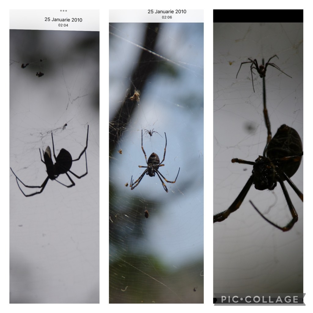 Die eerste foto gee die idee dat dit ‘n baie groot spinnekop se web is en dat hy daar vir sy prooi wag.