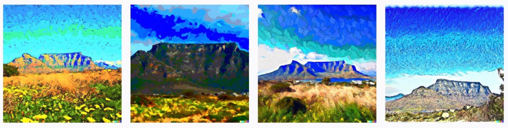 Daarom gaan ek oor een van OpenAI se ander KI kuberbrein gesels, naamlik DALL-E, ‘n kuberbrein wat prente teken na aanleiding van leidrade wat ‘n mens gee. Aangesien die prente oorspronklik is, hoef daar nie toestemming gevra te word om dit te gebruik nie, die maatskappy en die kuberbrein moet net erken word.