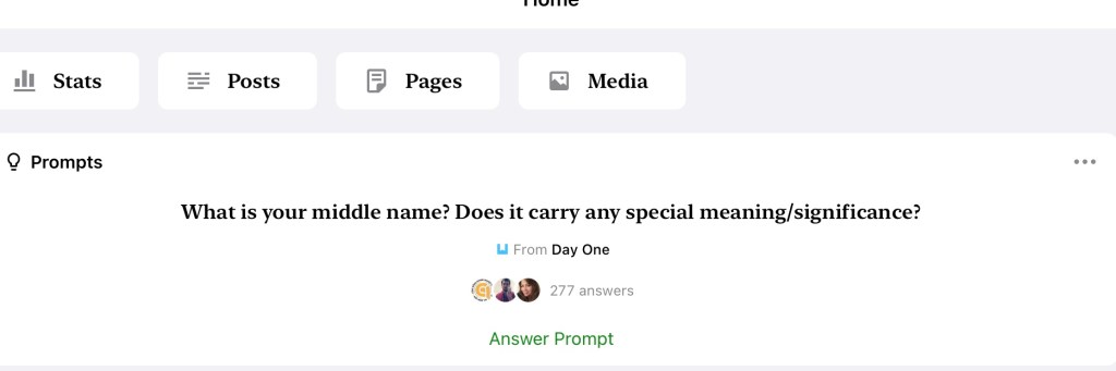 Dis interessant … gister op Radio Algoa (plaaslike radio stasie hier waar ons nou tydelik bly), was dit die presiese vraag: Wat is jou middelste naam en waar kom dit vandaan? Dalk het die aanbieder ook ‘n blog (en verbintenis met Jetpack), die dat sy toe die vraag vir luisteraars gevra het 🤔.