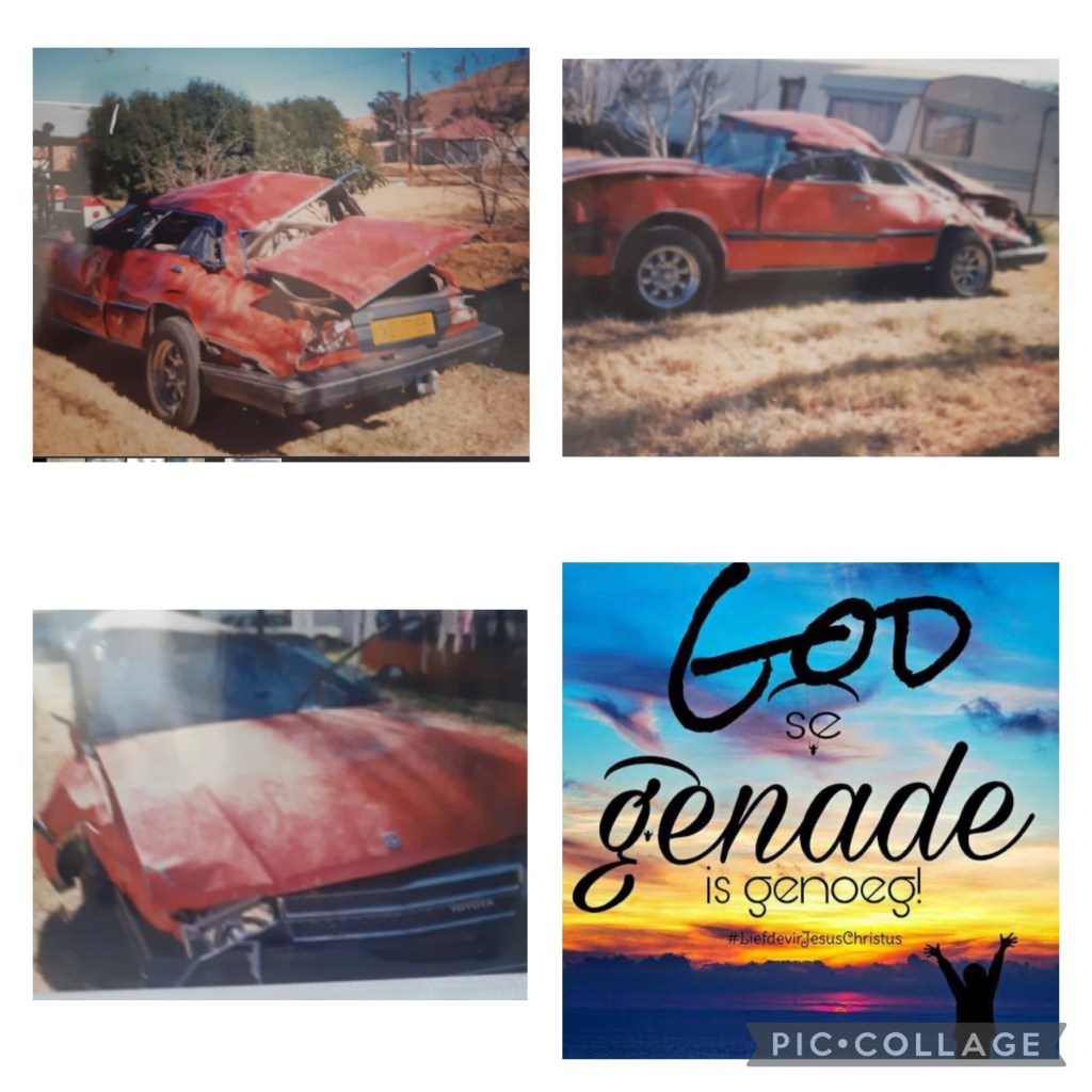 1. Sjoe Christa! Dit lyk nie mooi nie. Een ander geluk is dat die motors van daardie tyd nog met ordentlike metaal gebou is, anders was dit dalk baie anders. You live to tell the tale!
