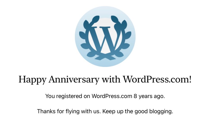 Vanoggend kry ek die boodskappie, ek is al 8 jaar op WP besig. Dus het ek agt jaar gelede hierdie joernaal begin bou.