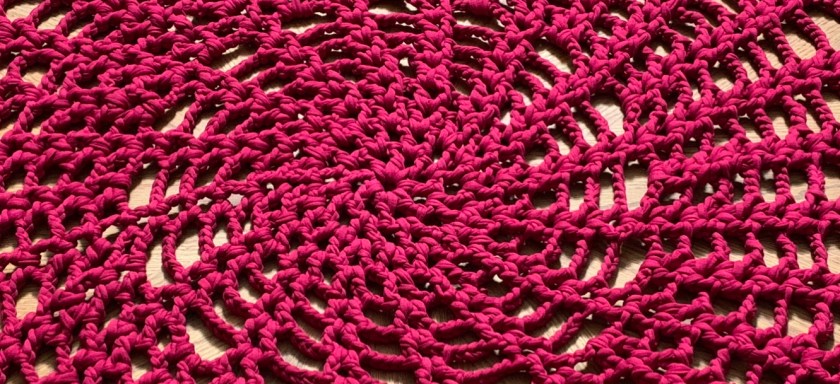 ‘n Tafeldoek met t-hemp “wol” gehekel