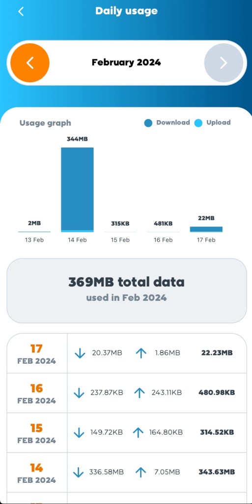 Ek kan ook elke dag kyk hoeveel data ek gebruik het …