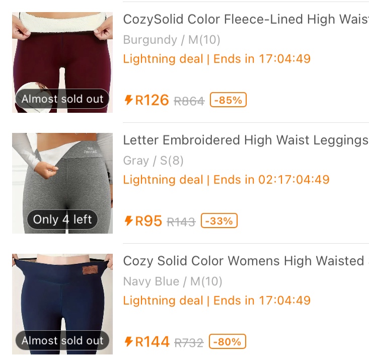 1. Ek hwt nogal destyds by Cape Union Mart regte warm lang onderbtoeke gekry. Verlede jaar het ek ‘n lieflike, dun, thermal een by Woollies ook gekry. Die invoerbelasting is net verskriklik! Ek is bly jy vertel van Temu.
