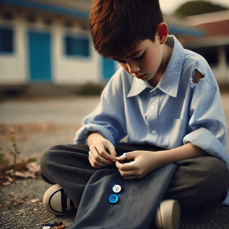 Dit was nie altyd so nie, ons was eens op ʼn tyd goeie vriende. Ons was saam in die kleuterskool en het altyd lekker gespeel. Die fabriek waar sy pa werk het ʼn ruk terug toegemaak en hy is nou heeldag by die huis. Maar dis nie my skuld dat mens nou die gate in Tiaan se kouse kan sien omdat sy broek te kort vir hom is nie. Hy het begin uithang met ander groepe by die skool en hulle geniet dit om die kleiner kinders rond te stamp.